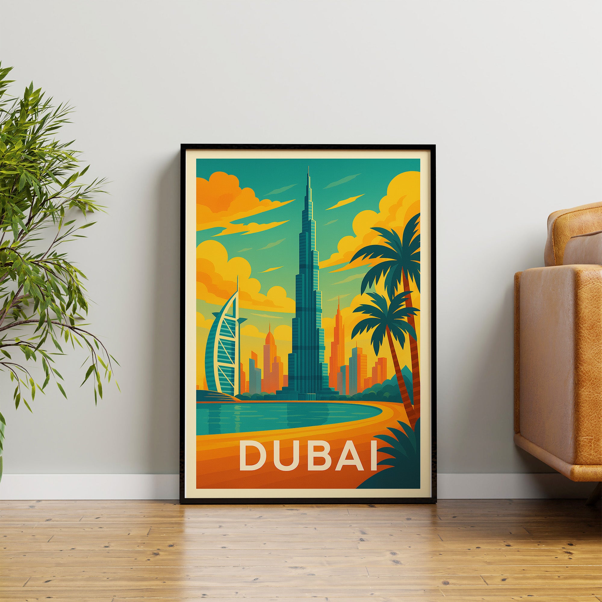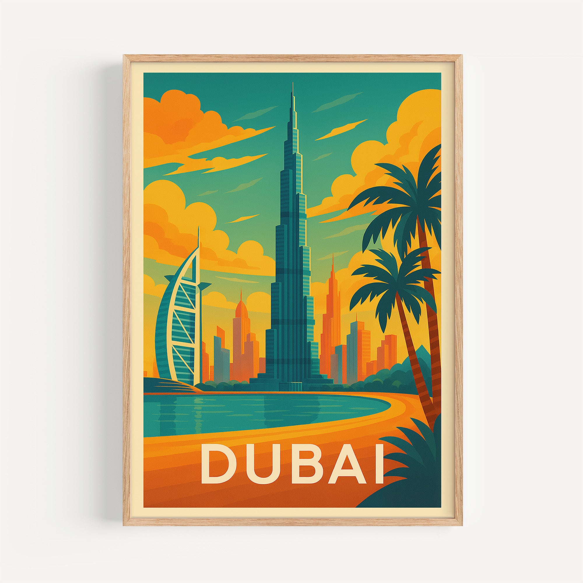 Dubai retro travel poster