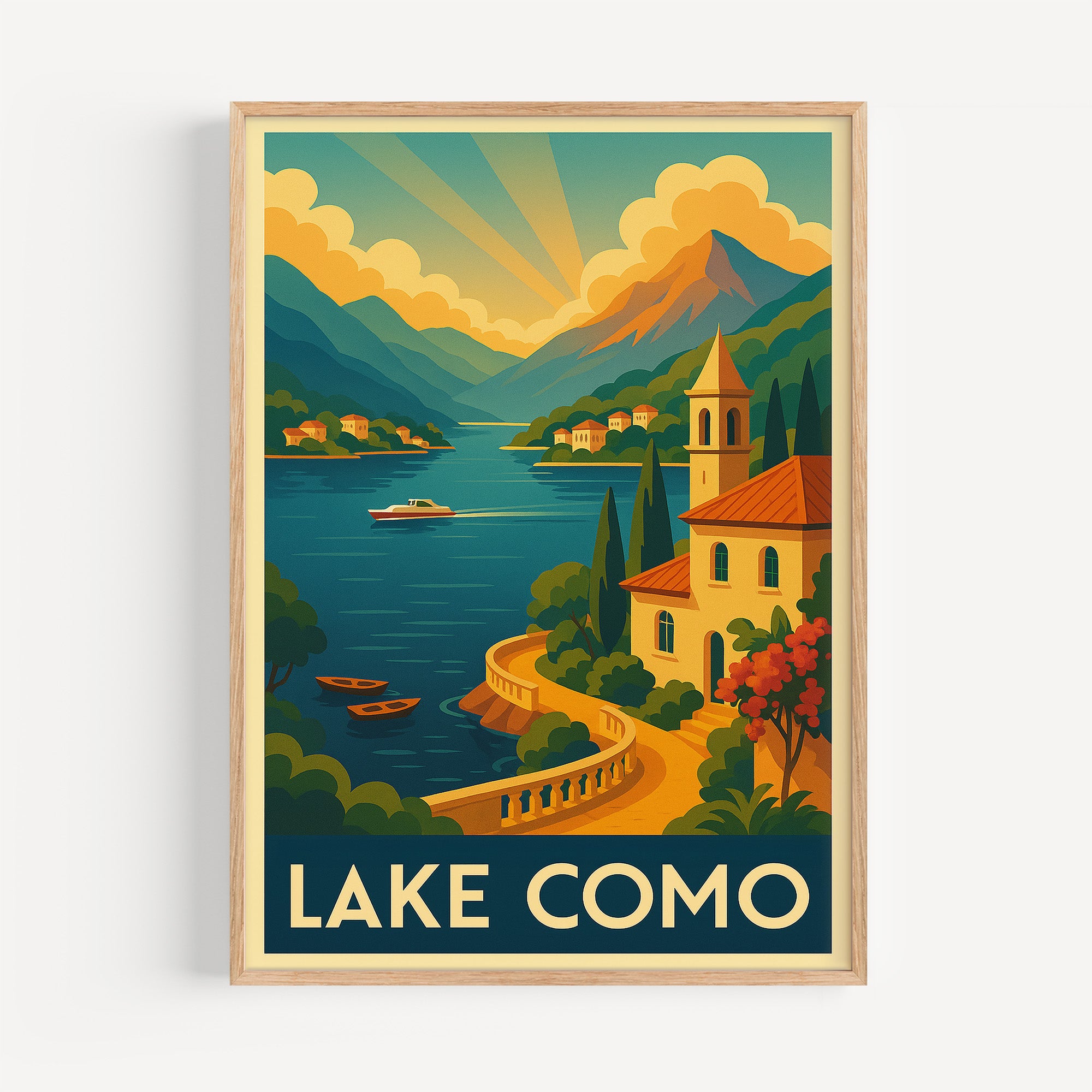 Lake Como retro travel poster